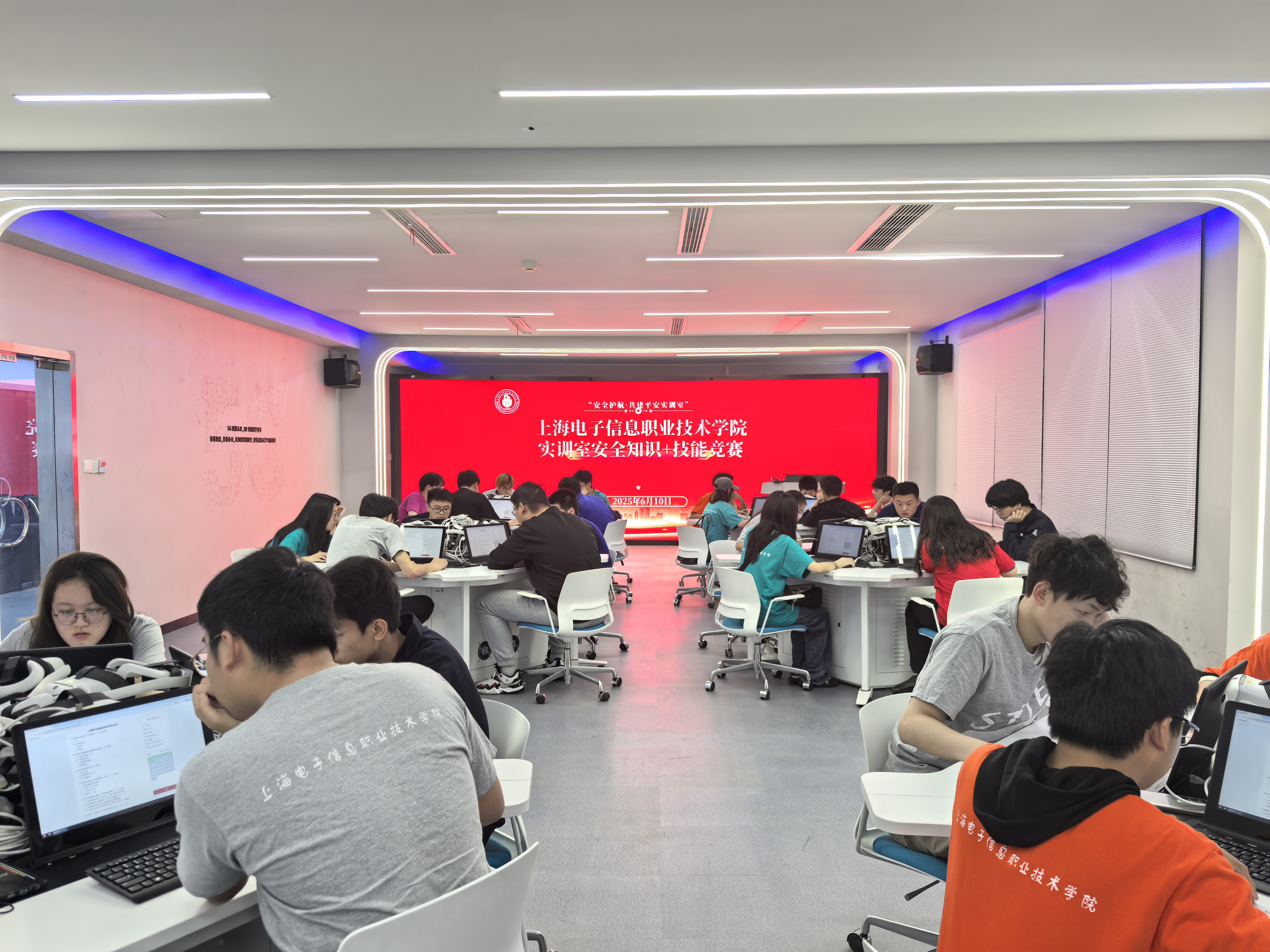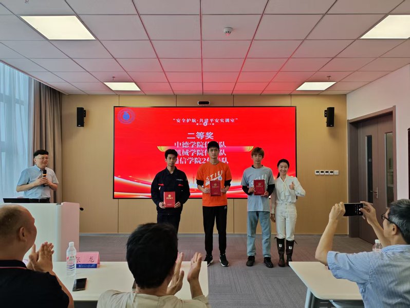 本次竞赛包括了致辞、理论答题、技能实操、颁奖四个环节。在理论答题环节,各参赛队伍上机进行答题考试,每队三人独立完成,考试内容为我校的实训室安全管理制度(如实训器材存放、用电规范等)、消防基础知识(灭火器分类、逃生路线等)、应急救护常识(触电、烧伤等应急处置)等,体现了参赛队伍扎实的安全知识基础。