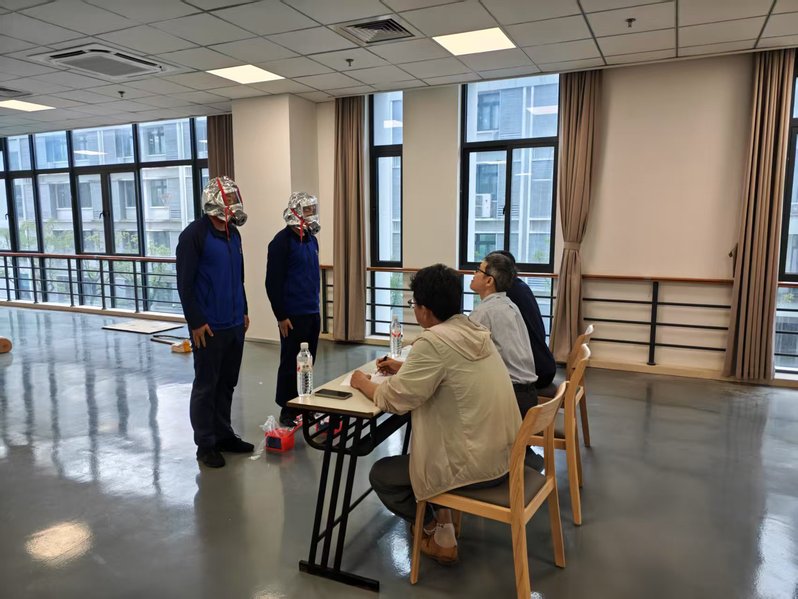在技能实操环节,各参赛队伍依赛前抽签顺序进行了灭火毯的应急使用、灭火器的使用、防烟/毒面具的佩戴与存放、人员触电应急处理等实际操作。操作完成后,评委专家对参赛队员进行进一步的补充问答。整个过程中,各参赛队伍精神饱满、反应迅速、操作熟练,展示了扎实的实操技能水平和良好的安全应急素养。