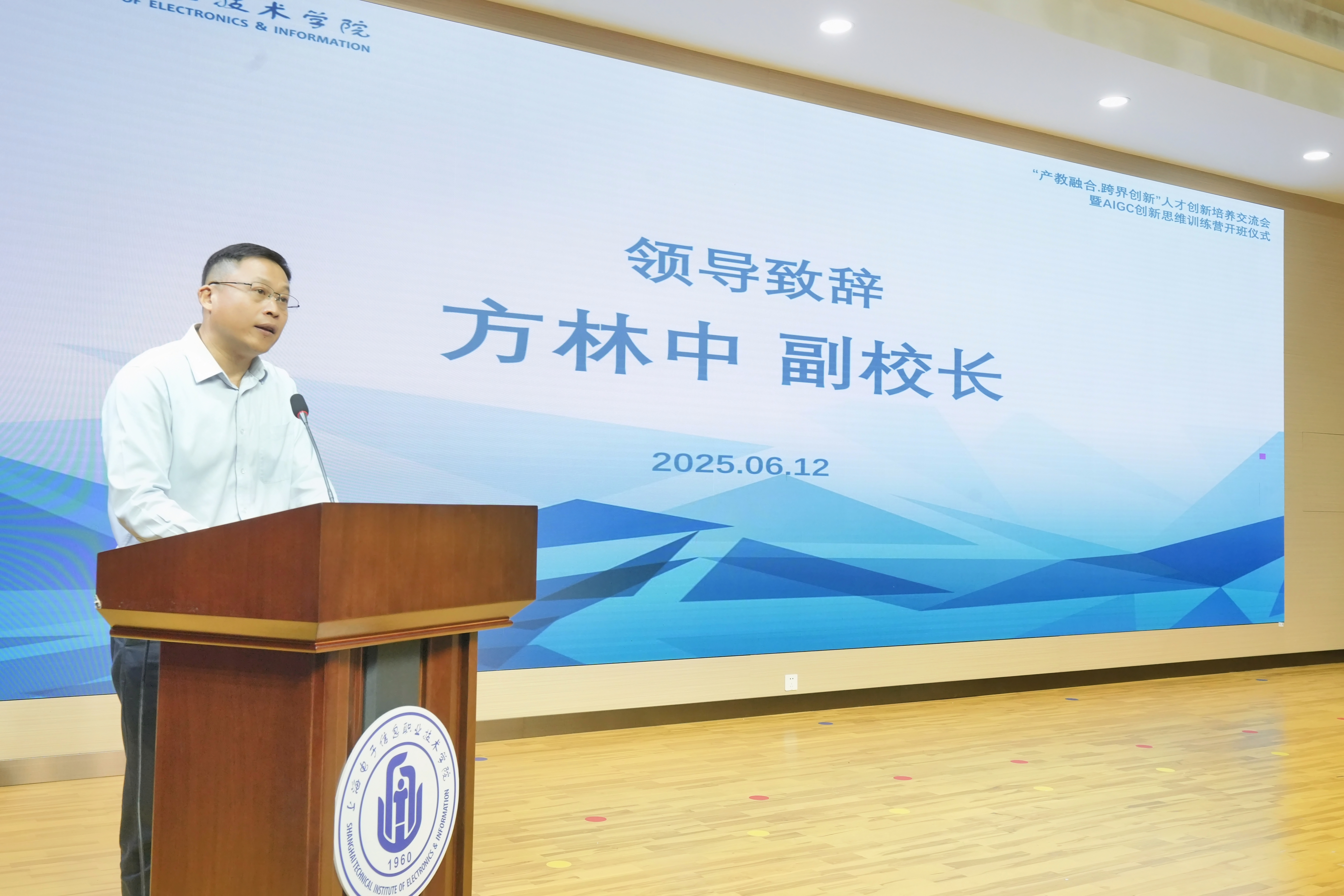 方林中代表学校致辞。他表示,本次会议既是高校与企业的一次学术交流、产教融合的盛会,更是一次围绕AIGC赋能下的人才培养转型的深度研讨,期待通过AIGC创新思维训练营,贡献可借鉴的设计创新人才培养新范式,助力设计教育的高质量发展。