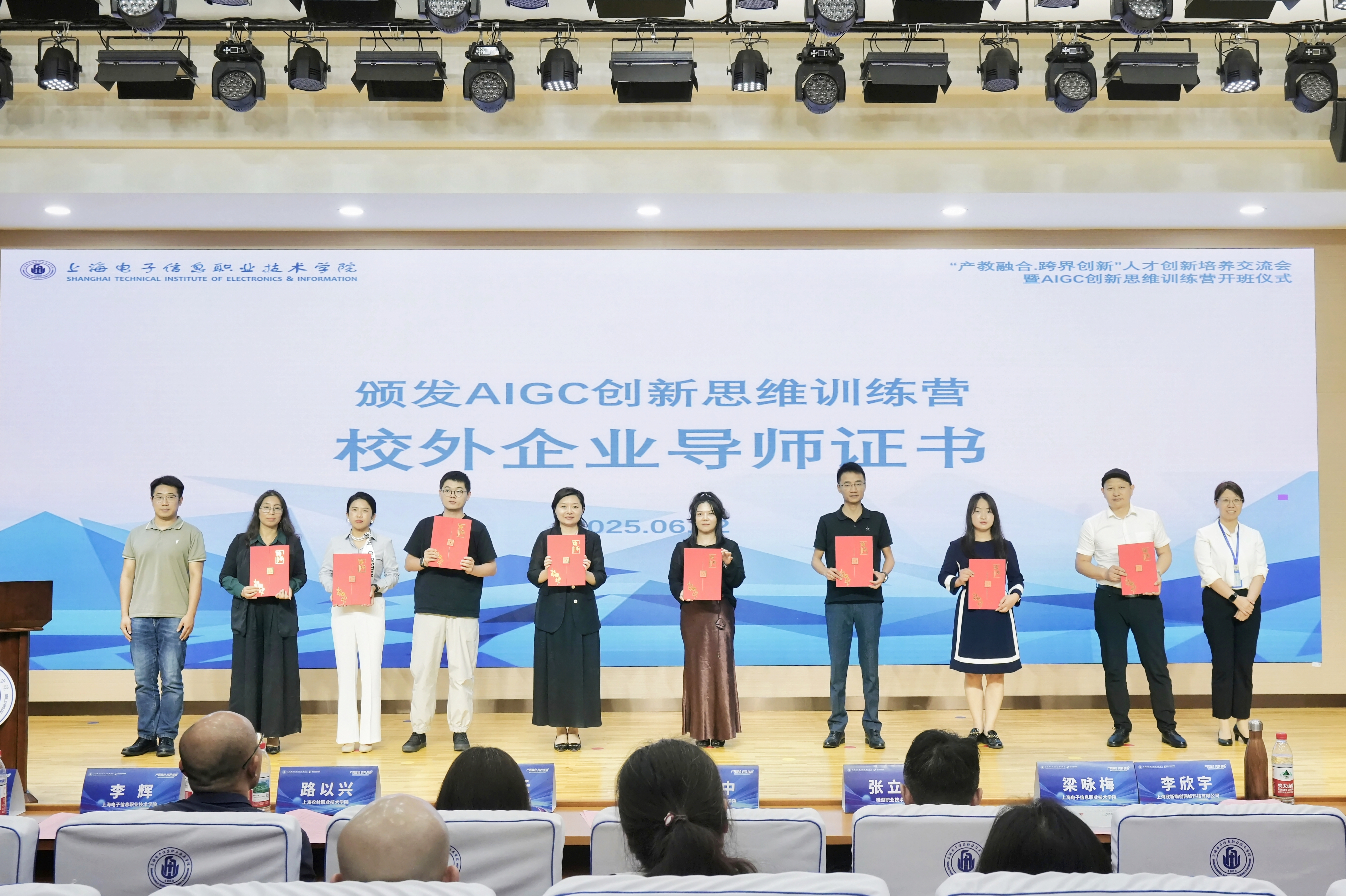 设计与艺术学院“AIGC创新思维训练营”负责人孙娜蒙详细介绍了本次会议报告以及创新思维训练营的基本建设情况。在各位嘉宾的共同见证下,张立图、李欣宇、周旭东、我校教务处处长兰小云、上海农林职业技术学院数字经济与创意系主任路以兴等校企代表按下启动按钮,标志着“AIGC创新思维训练营”正式开班。我校科研处副处长李辉、学生处副处长梁咏梅为企业导师颁发校外导师证书。设艺学院副院长周前程、赵莹为学员颁发学员证。