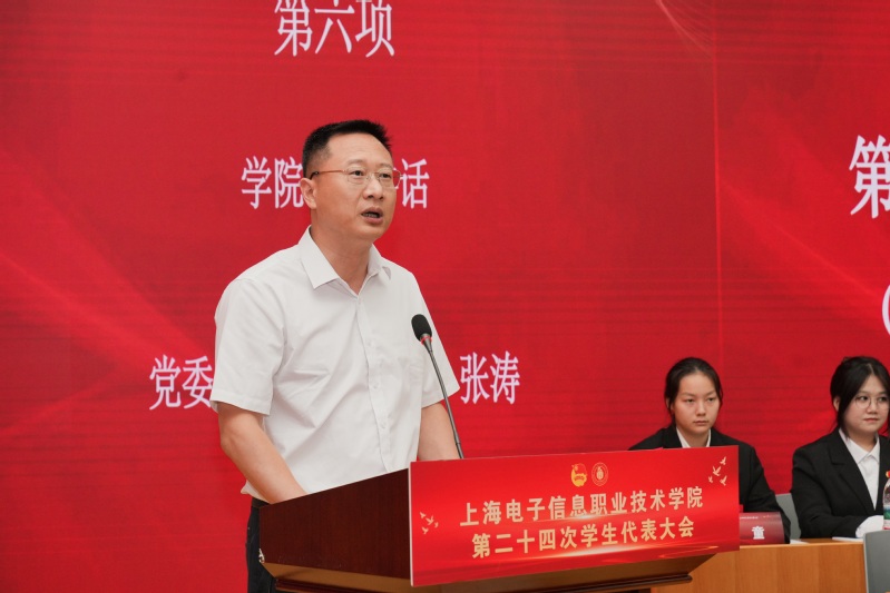 6月20日,上海电子信息职业技术学院第二十四次学生代表大会(以下简称“学代会”)在中德楼C楼108报告厅召开。党委副书记、副院长张涛,上海市学生联合会驻会执行主席周江南,学生工作部部长,校团委副书记、校学生会秘书长,兄弟院校学生会主席团代表,以及各二级学院分管学生工作领导、团总支书记和全体正式代表出席会议。