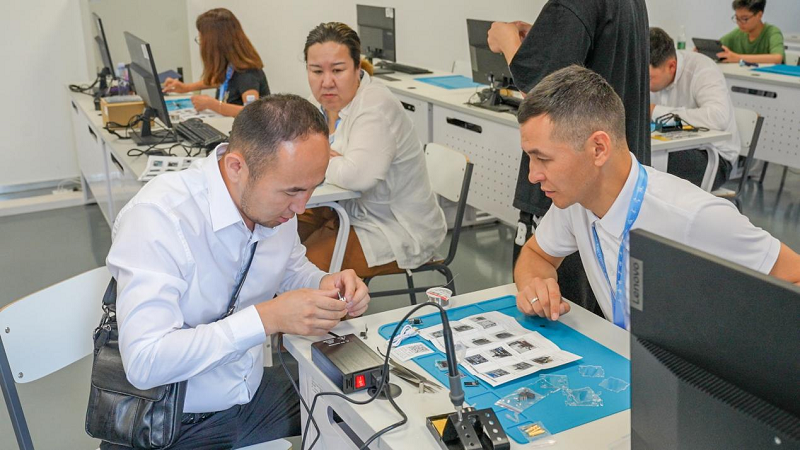 在专业培训环节,学校充分发挥自身在电子信息技术领域的专业优势,精心设计课程体系。围绕世界技能大赛电子技术赛项的标准与要求,院校骨干教师从电路设计、程序编写、电子设备调试与维护等多个维度展开授课,并带领哈萨克斯坦教师走进实训基地,开展实践操作训练。双方还就职业教育课程开发、人才培养模式等内容进行了深入研讨,碰撞出思想的火花。