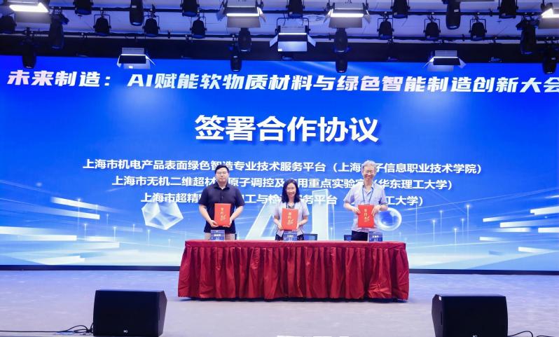 赵坚、华东师范大学数据科学与工程学院党委书记王长波、上海市物联网行业协会秘书长潘君才、上海智元新创技术有限公司科研教育部总经理刘牧云共同为“全国具身智能行业产教融合共同体”揭牌。上海市机电产品表面绿色智造专业技术服务平台与上海市无机二维超材料原子调控及应用重点实验室、上海市超精密光学加工与检测服务平台签署合作协议,将进一步深化高校、科研院所与行业之间的产教融合合作,推动长三角区域在软物质材料与绿色智能制造领域的创新发展。