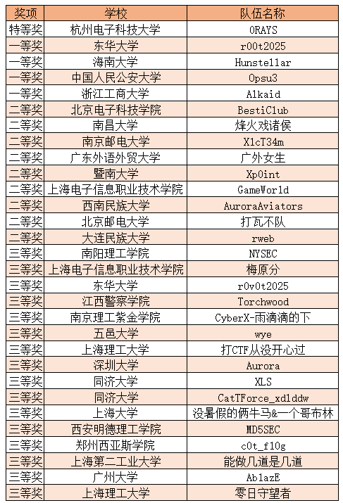 “磐石行动”2025第三届全国高校网络安全攻防活动网络攻防赛获奖名单