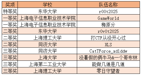 第十届上海市大学生网络安全大赛网络攻防赛获奖名单