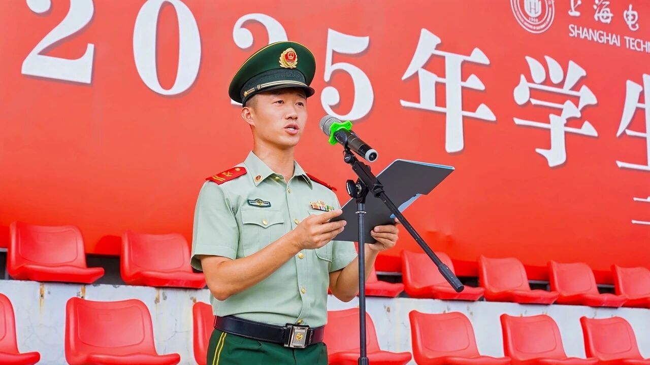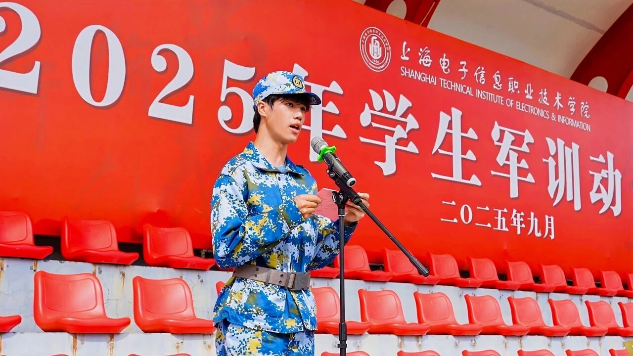 电子技术与工程学院胡锦华和中德工程学院张睿代表2025年全体参训学生发言,他们承诺和全体参训学生将在军训中严格遵守纪律、克服困难挑战、学习军人作风、磨砺提升自我,以饱满的热情和坚定的信念全力完成此次军训任务。