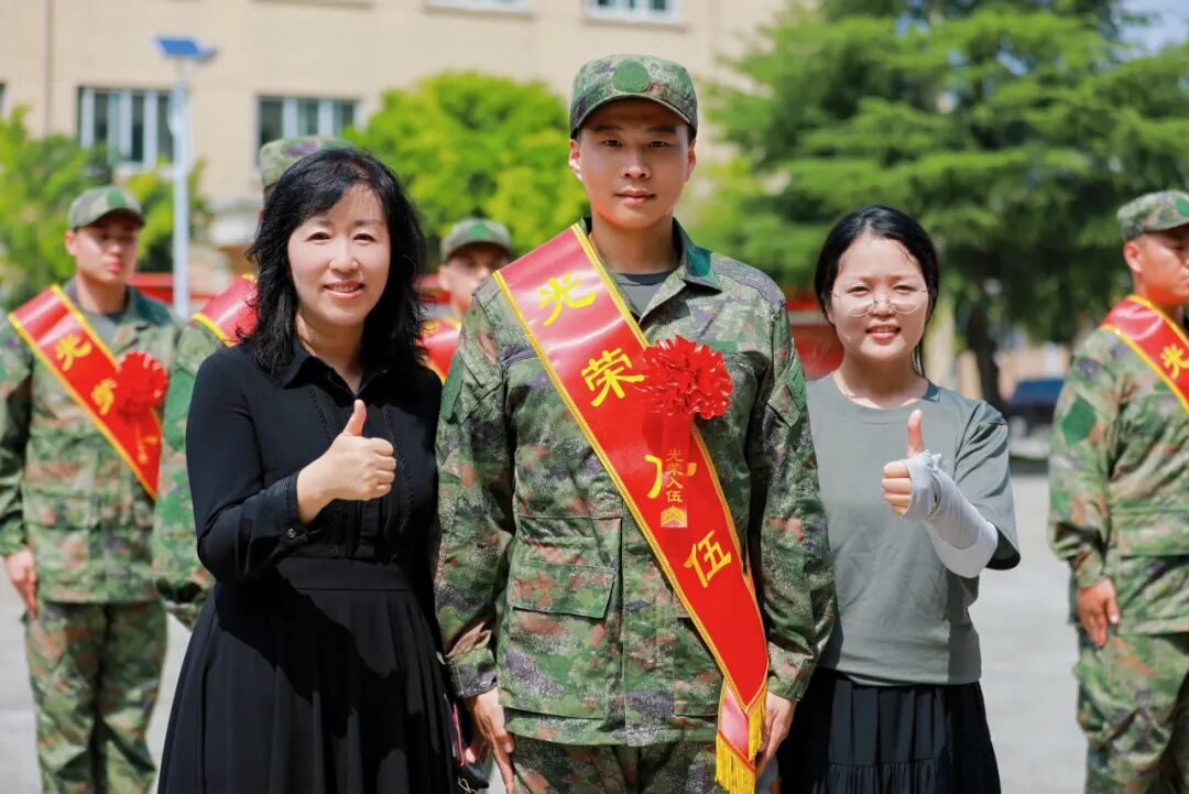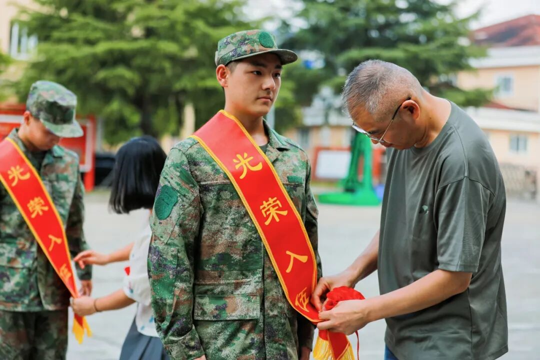辅导员为他们佩戴大红花和“光荣入伍”绶带,殷切寄语嘱托,激励他们严守纪律、刻苦训练,早日成为一名优秀的解放军战士。(供稿单位:人民武装部)