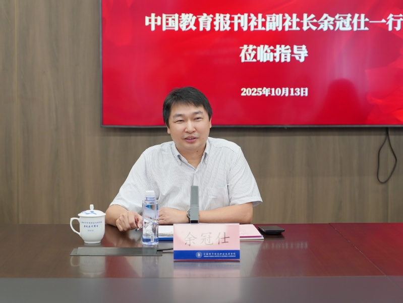 10月13日上午,中国教育报刊社副社长、中国教育报总编辑余冠仕,中国教育报职教周刊主编翟帆,中国教育报上海记者站记者任朝霞一行来校调研。调研会议在B205会议室举办,会议由学校党委副书记、院长赵坚主持。