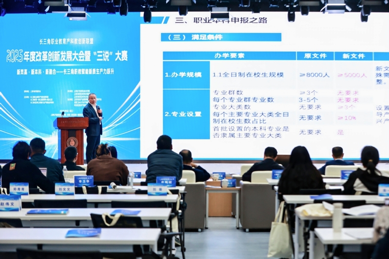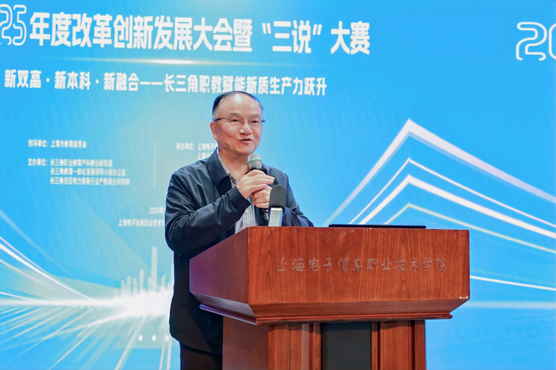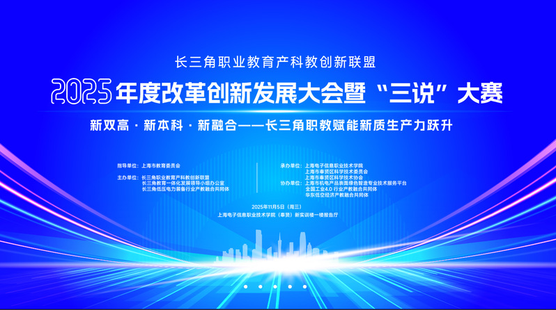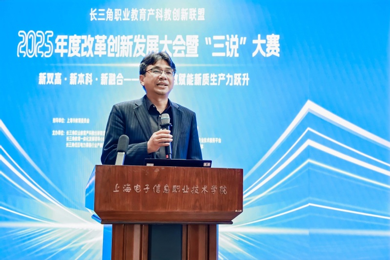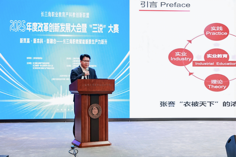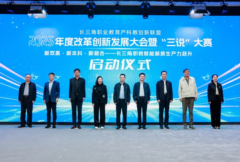 11月5日,以“新双高·新本科·新融合——长三角职教赋能新质生产力跃升”为主题的长三角职业教育产科教创新联盟2025年度改革创新发展大会暨“三说”大赛在我校新实训楼报告厅顺利召开。来自长三角地区及全国兄弟院校的院校长、教师代表,以及行业企业代表近200人参与本次盛会。