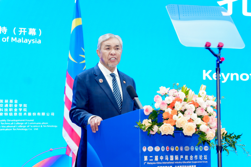 扎希德副总理高度肯定了中马职业教育合作的深远价值。他指出,基于信任、共享繁荣以及日益紧密的技术技能合作,中国连续第16年稳居马来西亚最大贸易伙伴之位。职业教育作为马来西亚的国家发展战略,是推动高技能、有韧性的经济发展的主要驱动力。他认为“中国模式”是马来西亚职教人才发展的催化剂,并表示马来西亚政府将强化政策支持和资金投入,确保由中马产教国际合作中心、马来西亚全国职业工友会组织以及中方合作伙伴推动的各项倡议取得具有高影响力、可持续性的成果。