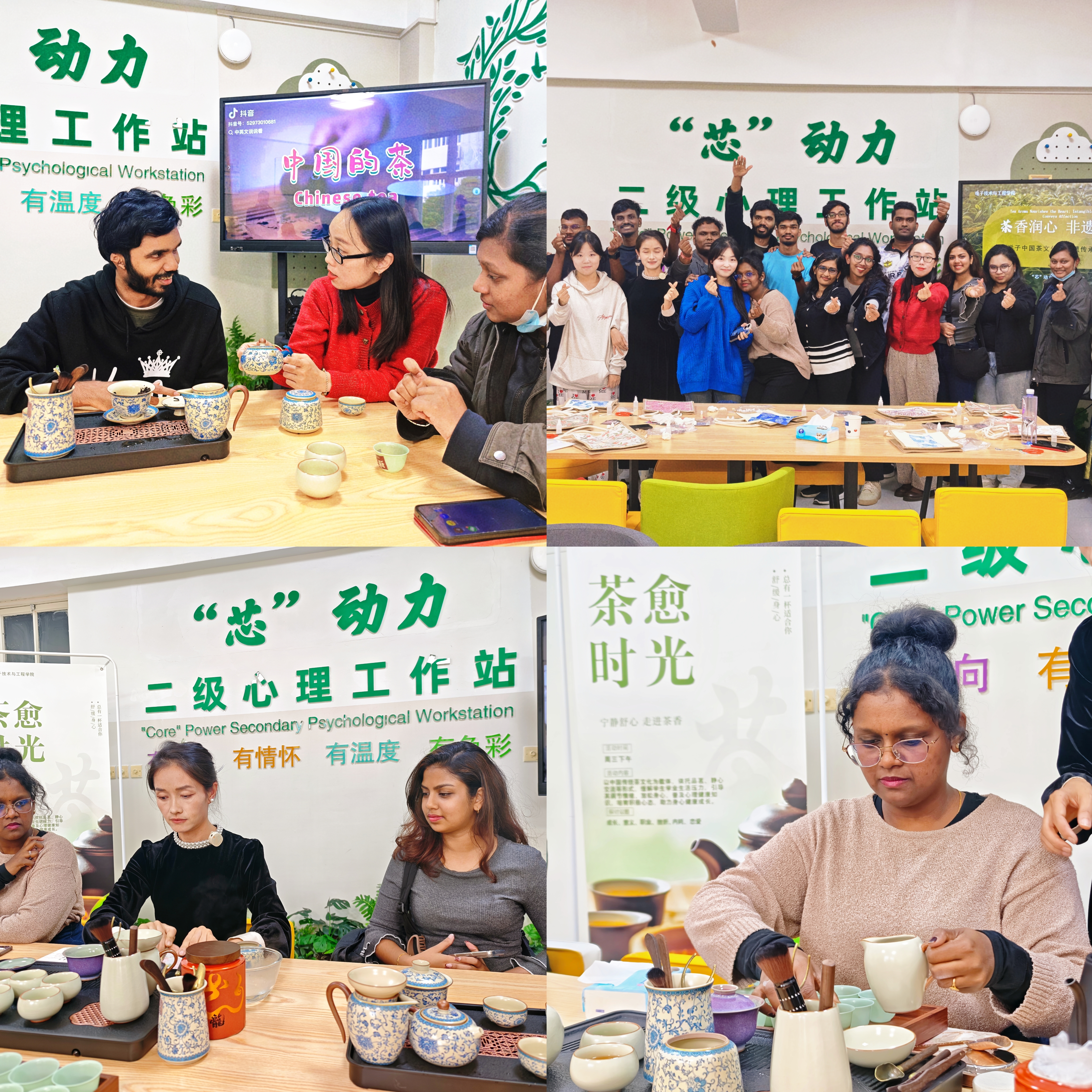 培训班策划了多场文化联谊活动,让两国青年在轻松氛围中增进了解、加深友谊。11月12日下午,中国传统文化体验活动在“芯”动力二级心理工作站开展。在中国茶艺和茶文化介绍环节,老师详细讲解茶的历史、种类与冲泡方法,学员们认真聆听、踊跃提问,在品茗环节感受龙井、普洱等不同茶叶的独特风味。宋锦帆布包DIY制作等手工制作,学员们在老师的指导下,亲手裁剪布料、搭配宋锦纹样、缝制专属帆布包,在一针一线的创作中感受传统手工艺的匠心与韵味。