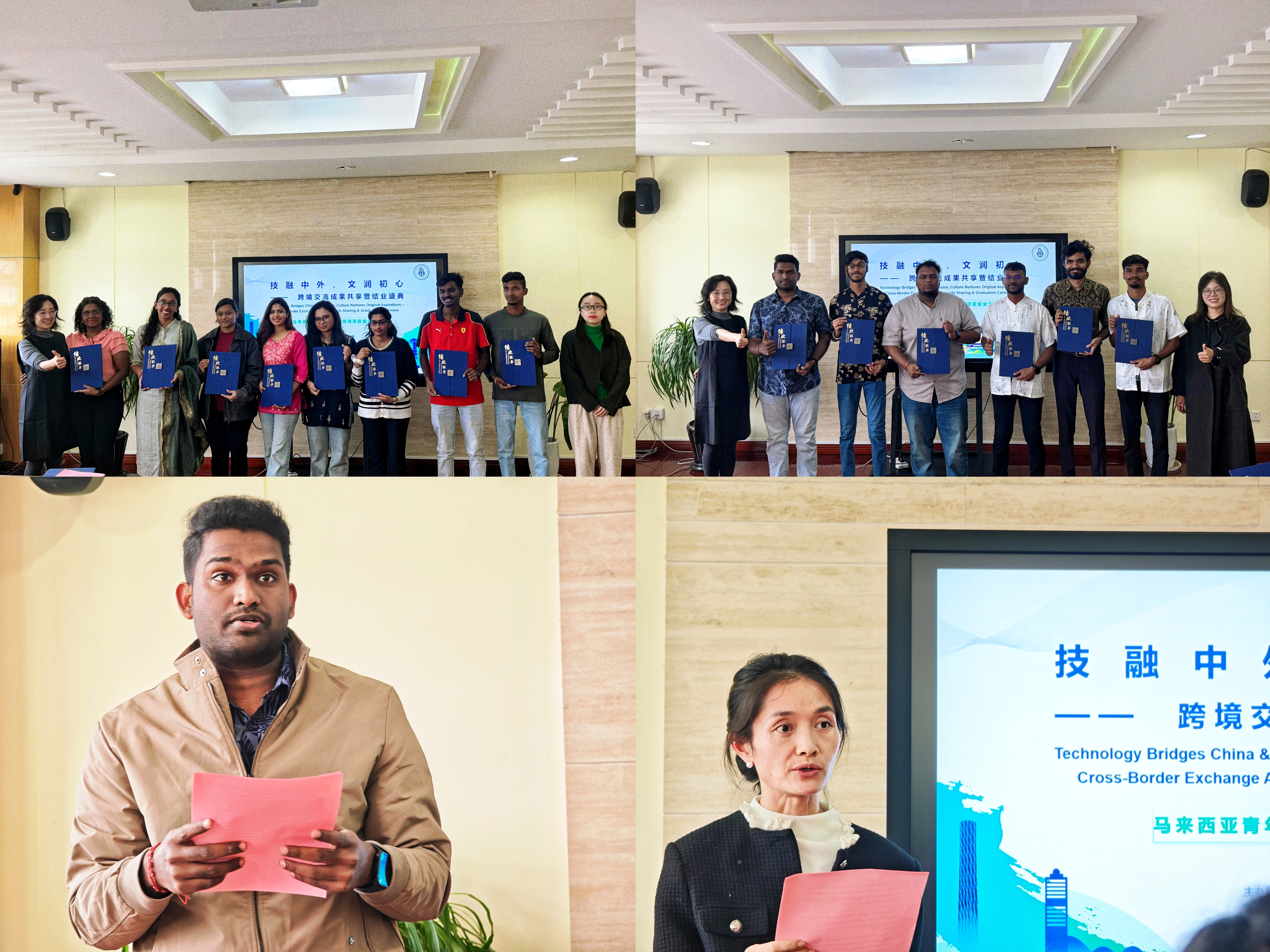 邱娟代表学校对马来西亚学生团顺利完成培训表示热烈祝贺,高度肯定了同学们在培训期间展现出的积极探索精神与良好学习风貌。她指出,本次交流培训项目是中马教育文化交流的重要纽带,不仅为马来西亚学子搭建了学习专业知识、感受中国文化的优质平台,更增进了两国青年之间的理解与友谊,希望同学们将此次培训所学运用到未来的学习与实践中,成为中马文化交流的使者,持续推动两国在教育领域的深度合作。