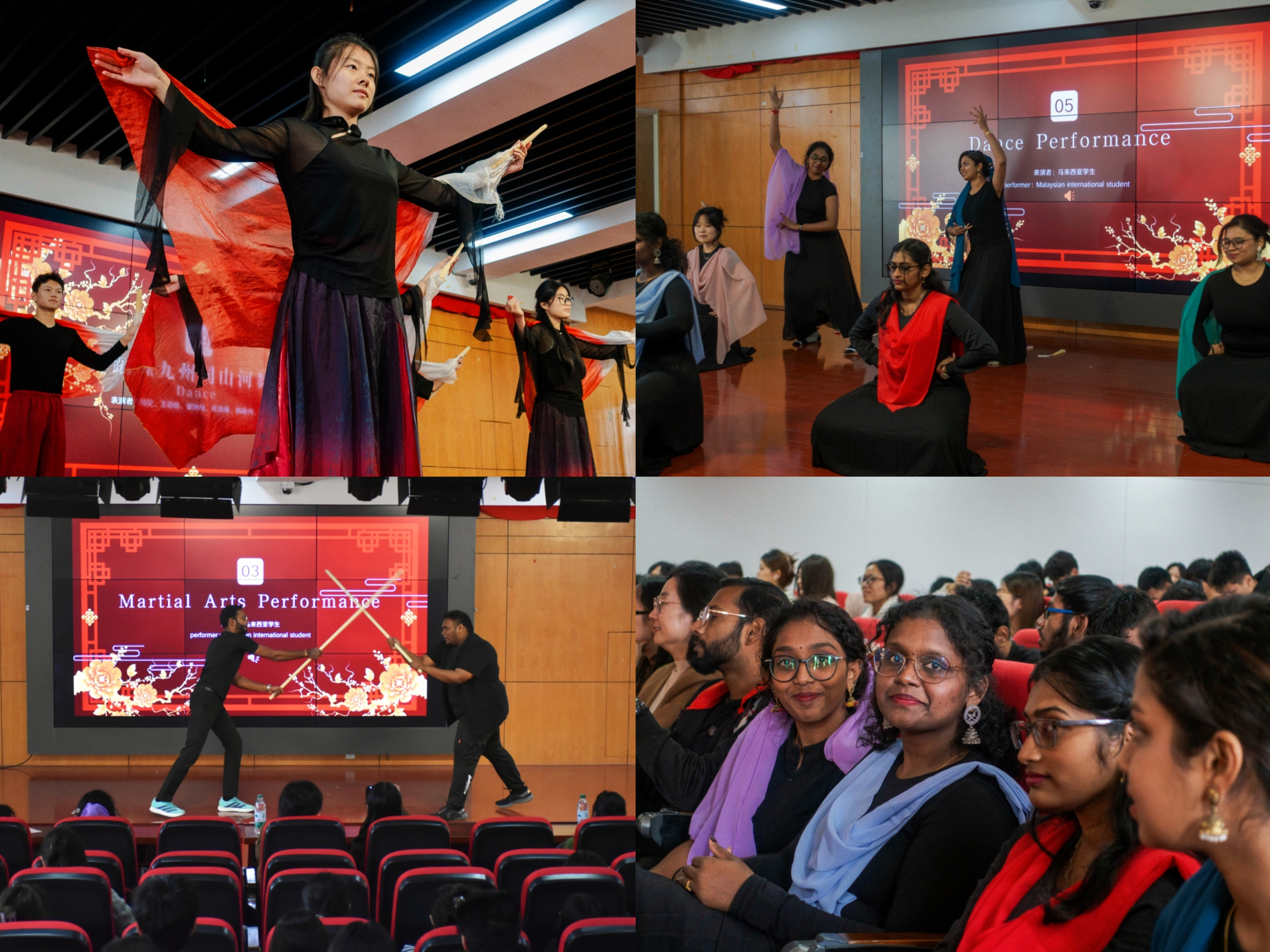 11月14日下午,中马文化联谊活动在H401教室举行,两国青年欢聚一堂,共同演绎文化盛宴。中国学生的传统舞蹈柔美典雅,马来西亚学员的南洋风情歌曲热情欢快,赢得现场阵阵掌声。互动游戏环节将气氛推向高潮,让大家在欢乐中加深文化认知,语言不通的隔阂在肢体交流与默契配合中逐渐消融,珍贵的友谊在交流中悄然绽放。