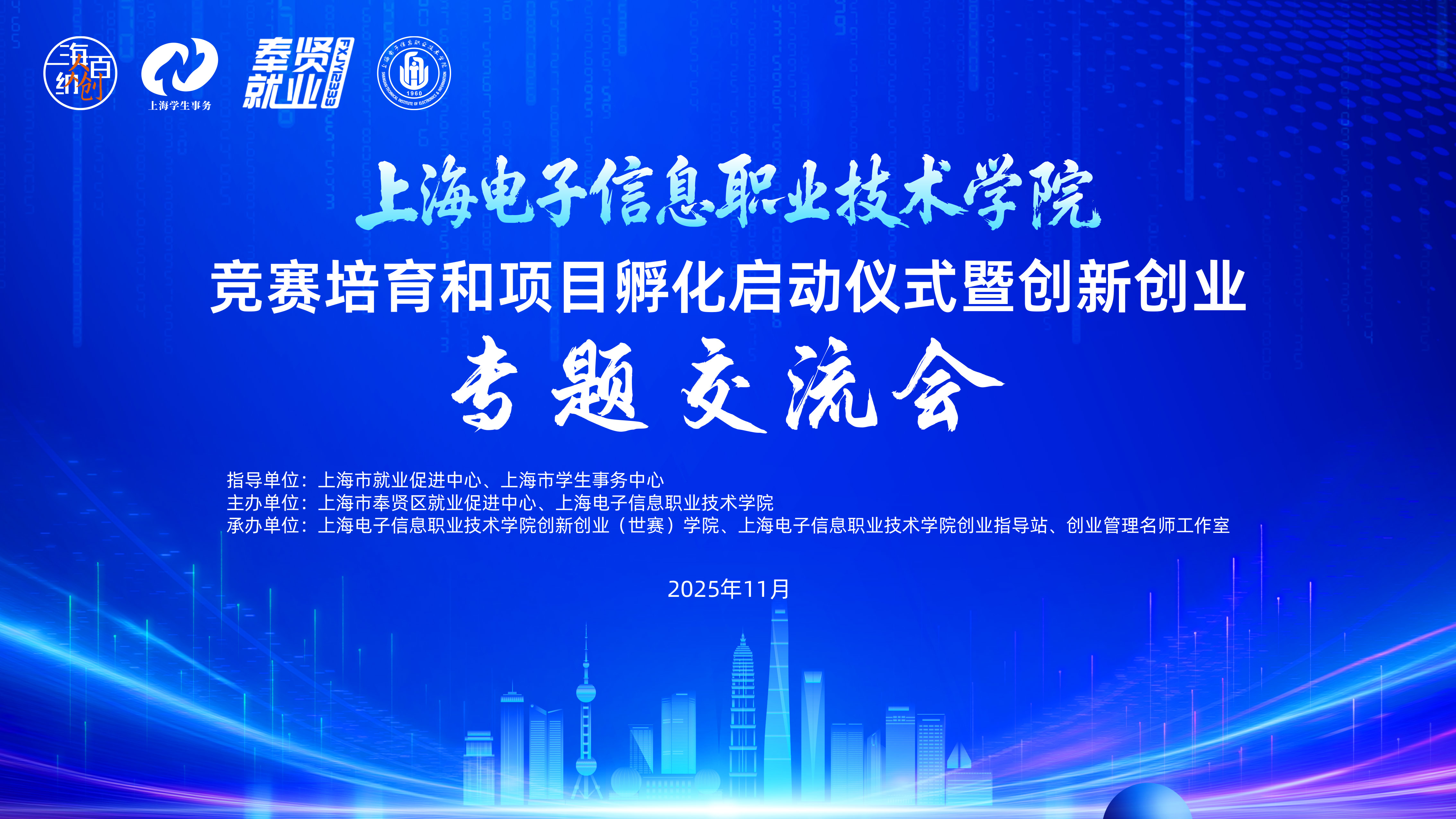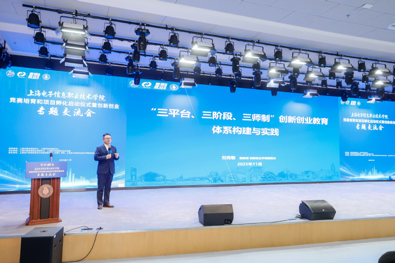 初冬暖意融,双创启新程。近日,学校竞赛培育和项目孵化启动仪式暨创新创业专题交流会在奉贤校区举行。本次活动由上海市就业促进中心、上海市学生事务中心指导,上海市奉贤区就业促进中心与我校联合主办,我校创新创业(世赛)学院、创业指导站、创业管理名师工作室共同承办,以“电子赋能创新,孵化驱动未来”为核心,汇聚政校行企多方力量,共探高职双创教育新路径。