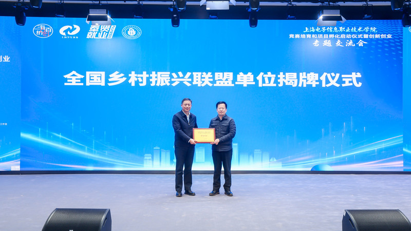 在揭牌仪式环节,孙文升代表全国乡村振兴产教融合联盟为我校授牌,方林中上台领牌,标志着我校正式成为“全国乡村振兴产教融合联盟”理事单位。这一重要举措既是对我校办学实力的认可,更为学校深化产教融合、服务国家乡村振兴战略搭建了广阔平台,将为双创实践注入强劲动力。