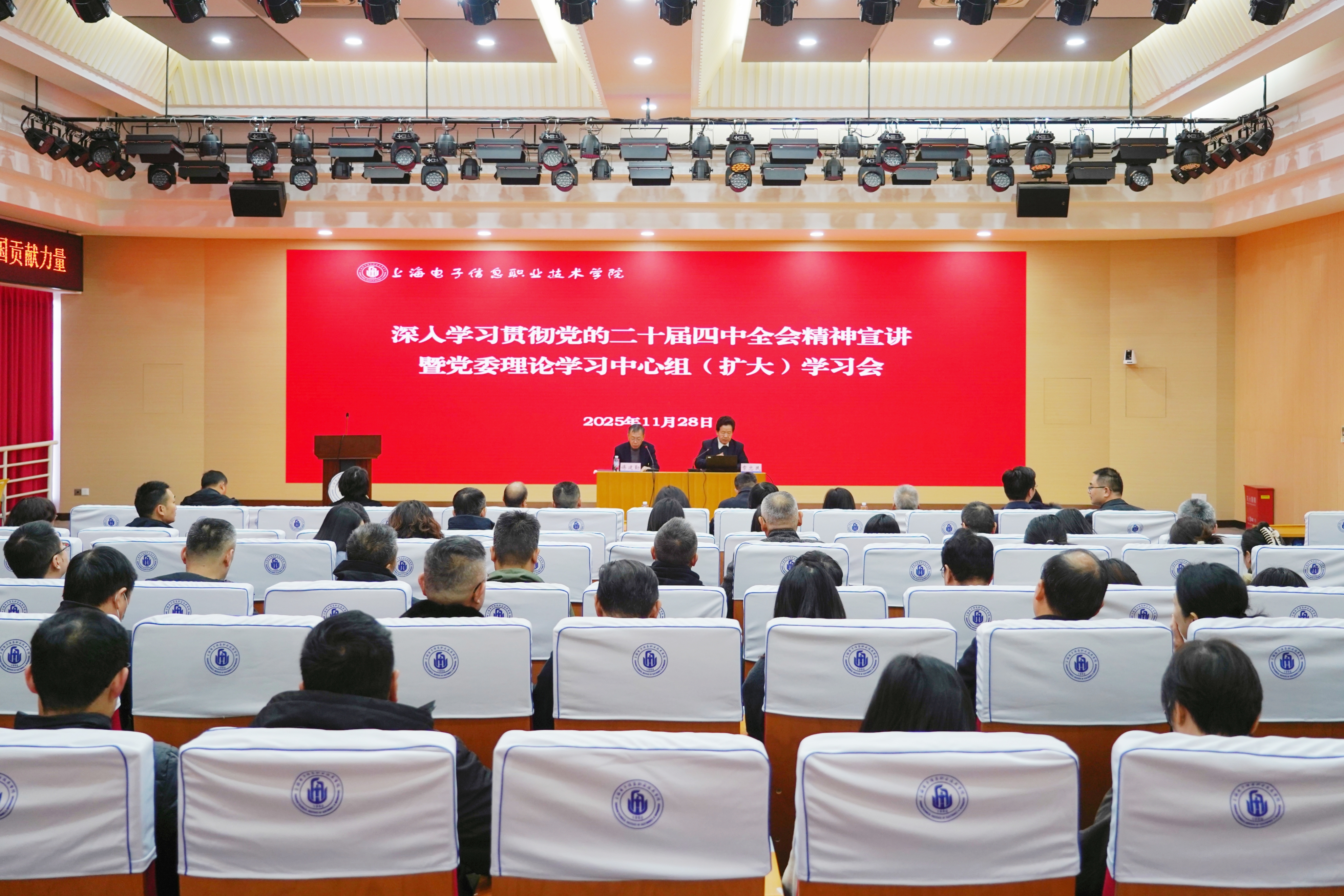 11月28日,学校在C108报告厅召开党委理论学习中心组(扩大)学习会,专题学习贯彻党的二十届四中全会精神。会议特邀上海市党的二十届四中全会精神专家宣讲团成员、上海财经大学马克思主义学院教授章忠民作辅导报告。学习会由党委书记傅建勤主持。