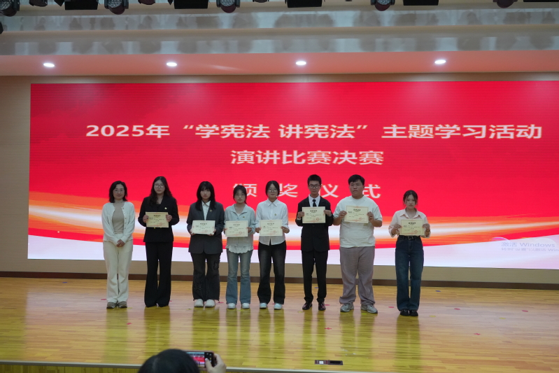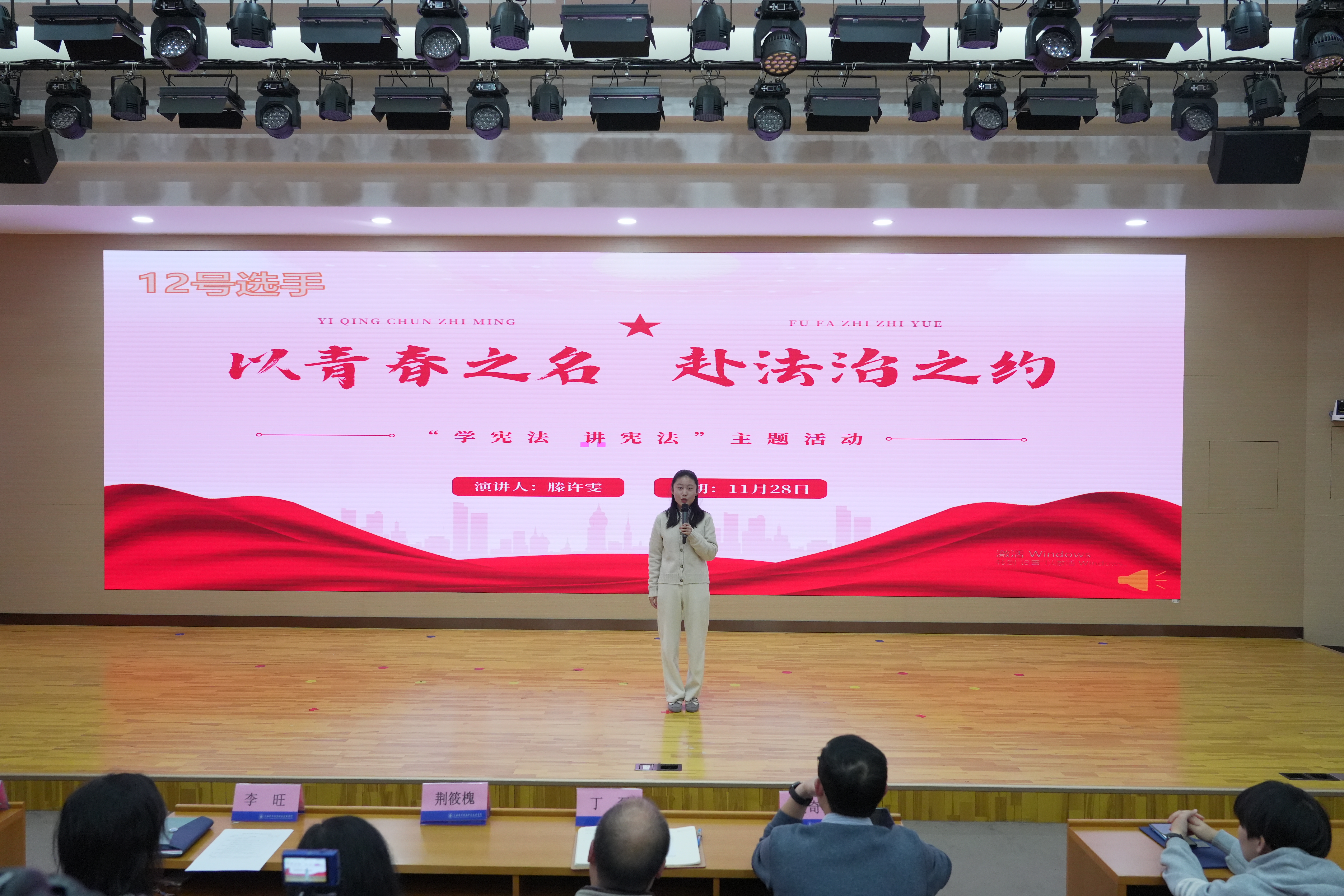 为深化青年大学生宪法法治教育,根据《教育部办公厅关于举办第十届全国学生“学宪法 讲宪法”活动的通知》(教政法厅函〔2025〕3号)的要求,呼应2025年上海市教育系统“学宪法 讲宪法”主题系列活动,迎接12月4日国家宪法日,11月28日,由学校办公室、马克思主义学院与学生工作部联合主办的“学宪法 讲宪法”演讲比赛圆满落幕。