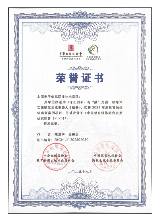 日前,中华出版促进会指导主办的“融聚智变,育见未来”2025年会在苏举办,包括中国人民大学、上海交通大学等在内的全国70余所高校、120余位专家学者与会。会上,中华出版促进会教育新闻出版专业委员会、中国教育电视协会高校电视专业委员会联合发布2024年度教育融媒体典型案例项目名单。我校党委宣传部报送的《守正创新、有“融”乃强,融媒体实践赋能集成电路人才培养》项目成功入选,并被收录于《中国教育媒体融合发展研究报告(2025)》。