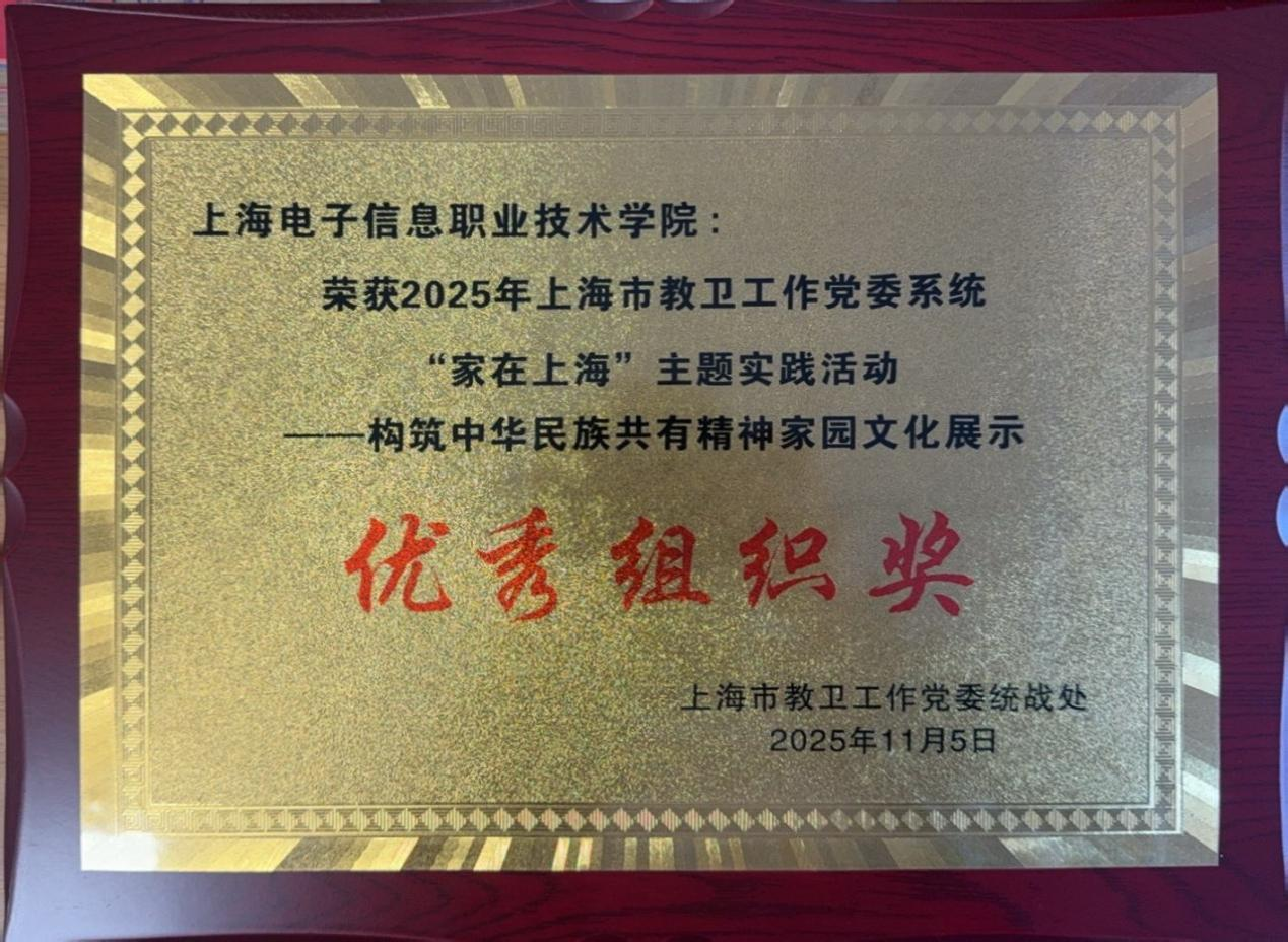 近日,我校荣获2025年上海市教卫工作党委系统“家在上海”主题实践活动“优秀组织奖”。此次活动由上海市教卫工作党委主办、上海第二工业大学承办,我校师生以“红榴枝”特色民族文化展示、民族文艺表演、传统礼射互动体验等多元形式,展现全校各民族学子团结奋进的精神风貌,彰显校园民族团结的良好氛围,获得各高校同仁广泛认可。
